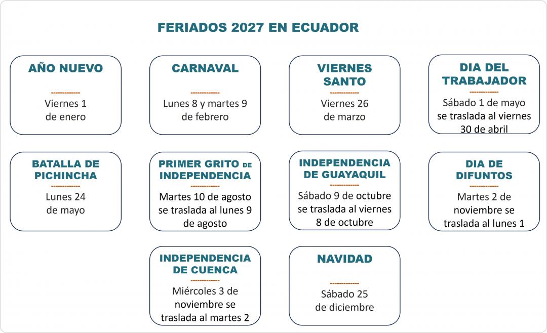 Conozca y descargue el calendario completo de feriados en Ecuador para el año 2027